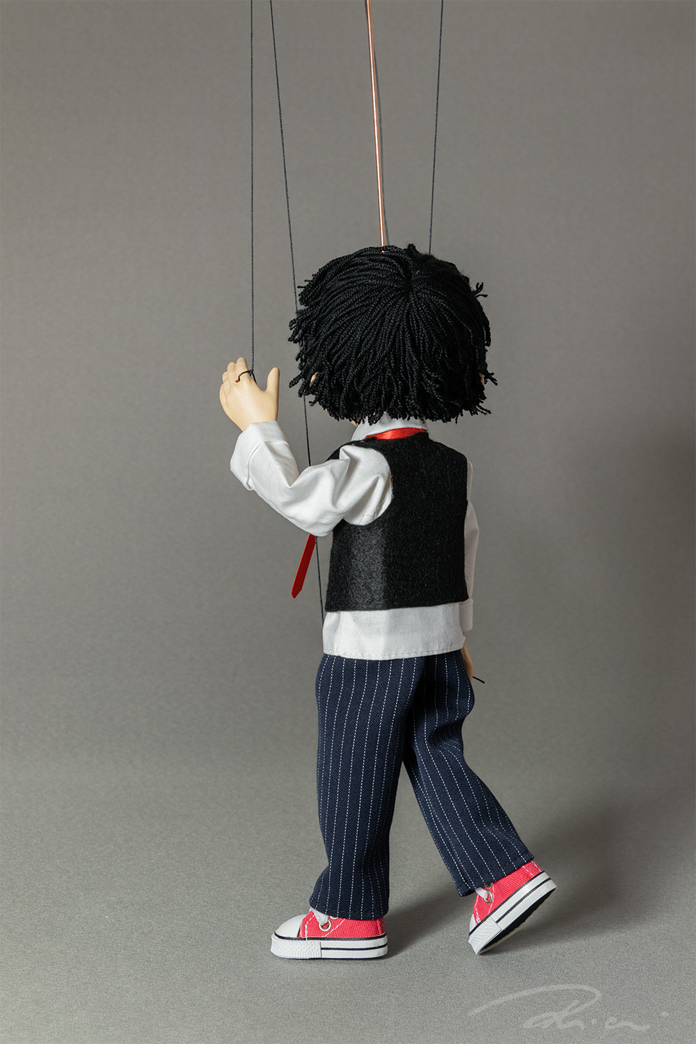 This student puppet, inspired by Japanese anime characters, is a fun and expressive addition to any puppet collection. Dressed in a classic school uniform with a modern twist, his rebellious canvas shoes add just the right touch of teenage attitude.