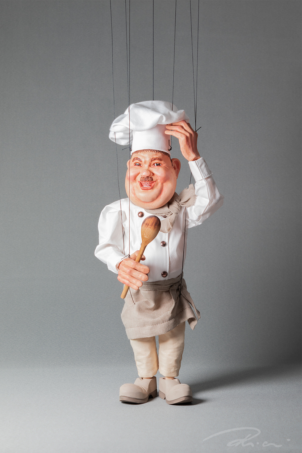This charming chef puppet comes packed with personality – and more than a passing resemblance to a certain comedic legend from the Laurel and Hardy duo.