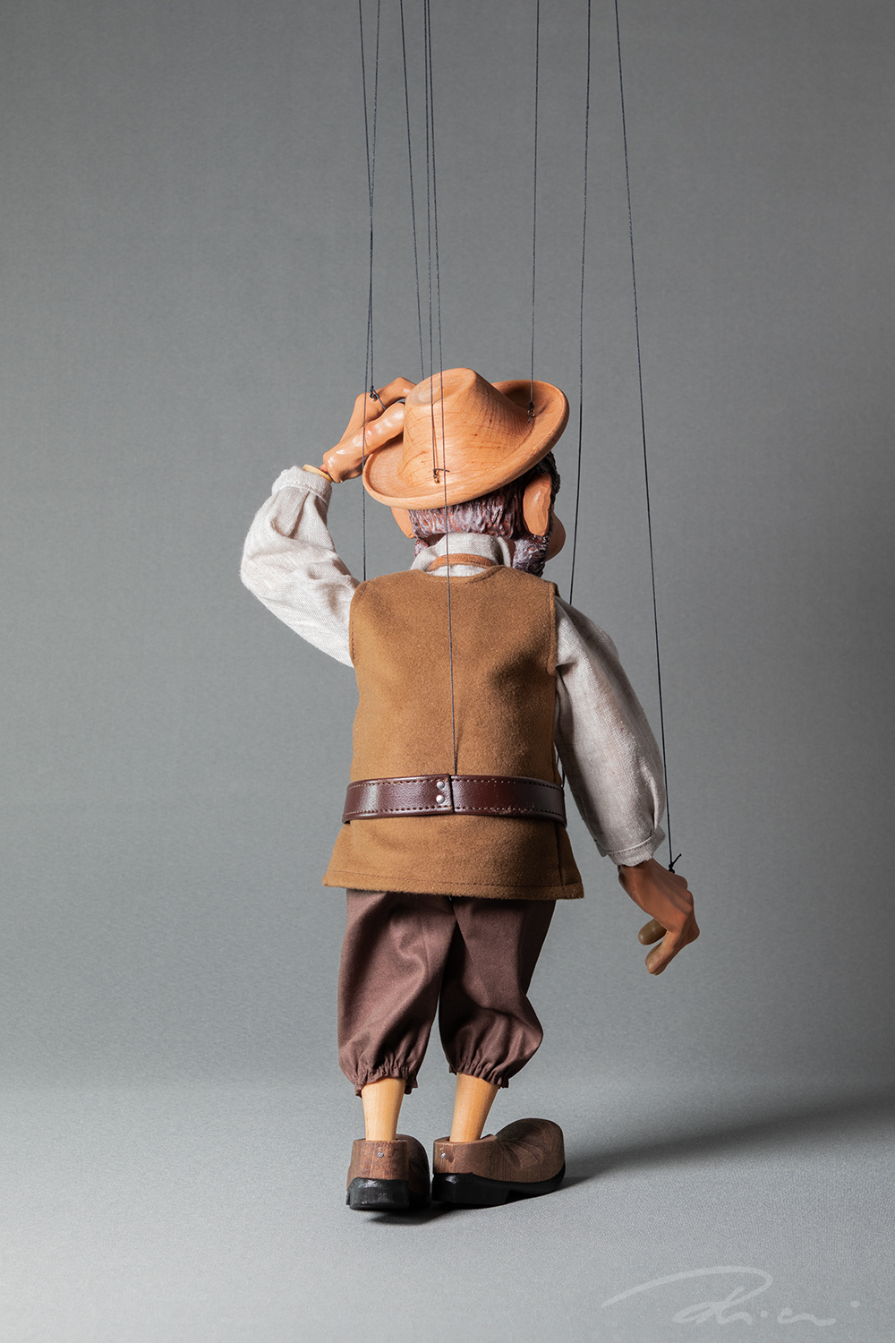 Lovingly made in the Czech Republic, this puppet captures Sancho’s warmth and earthy humour with exquisite detail — from his expressive face to his rustic outfit and rounded figure. His movements are surprisingly lifelike, thanks to traditional Czech marionette craftsmanship passed down through generations.